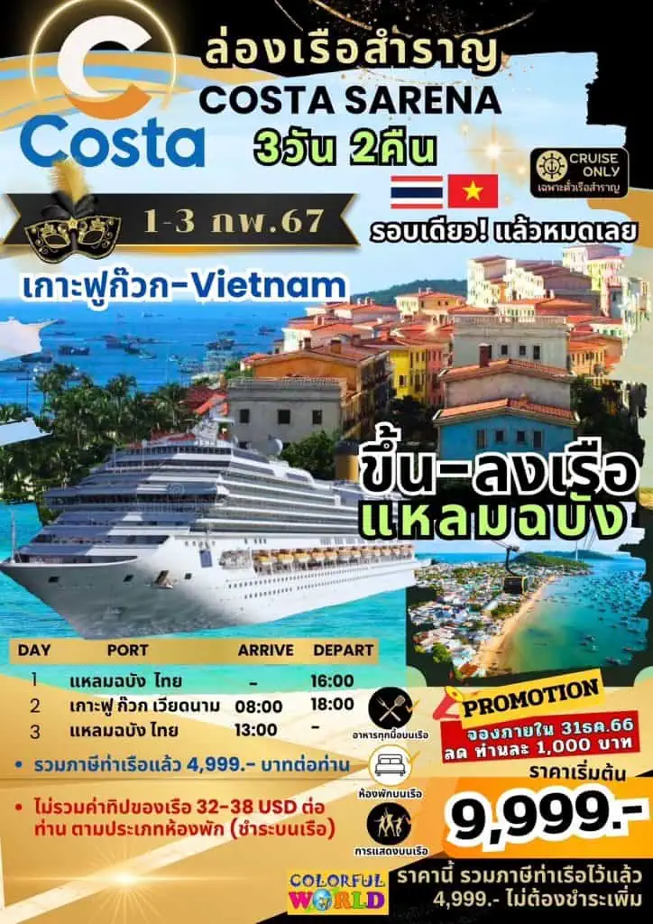 PACKAGE COLORFUL WORLD แหลมฉบัง-ฟูก๊วก- แหลมฉบัง (ขึ้น-ลง แหลมฉบัง)